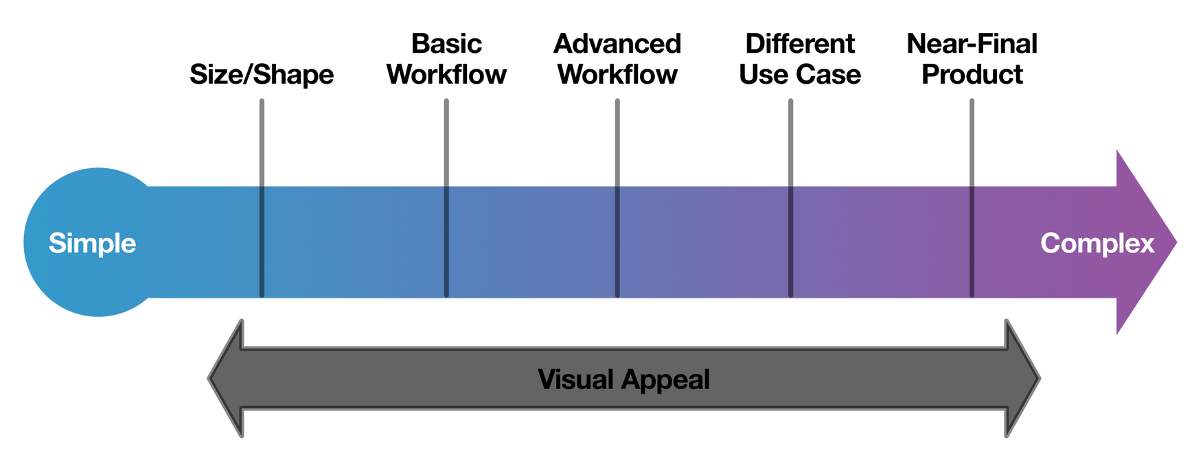 Remember that not all prototypes need to be complicated. Complexity and visual appeal do not need to converge until the end of development.